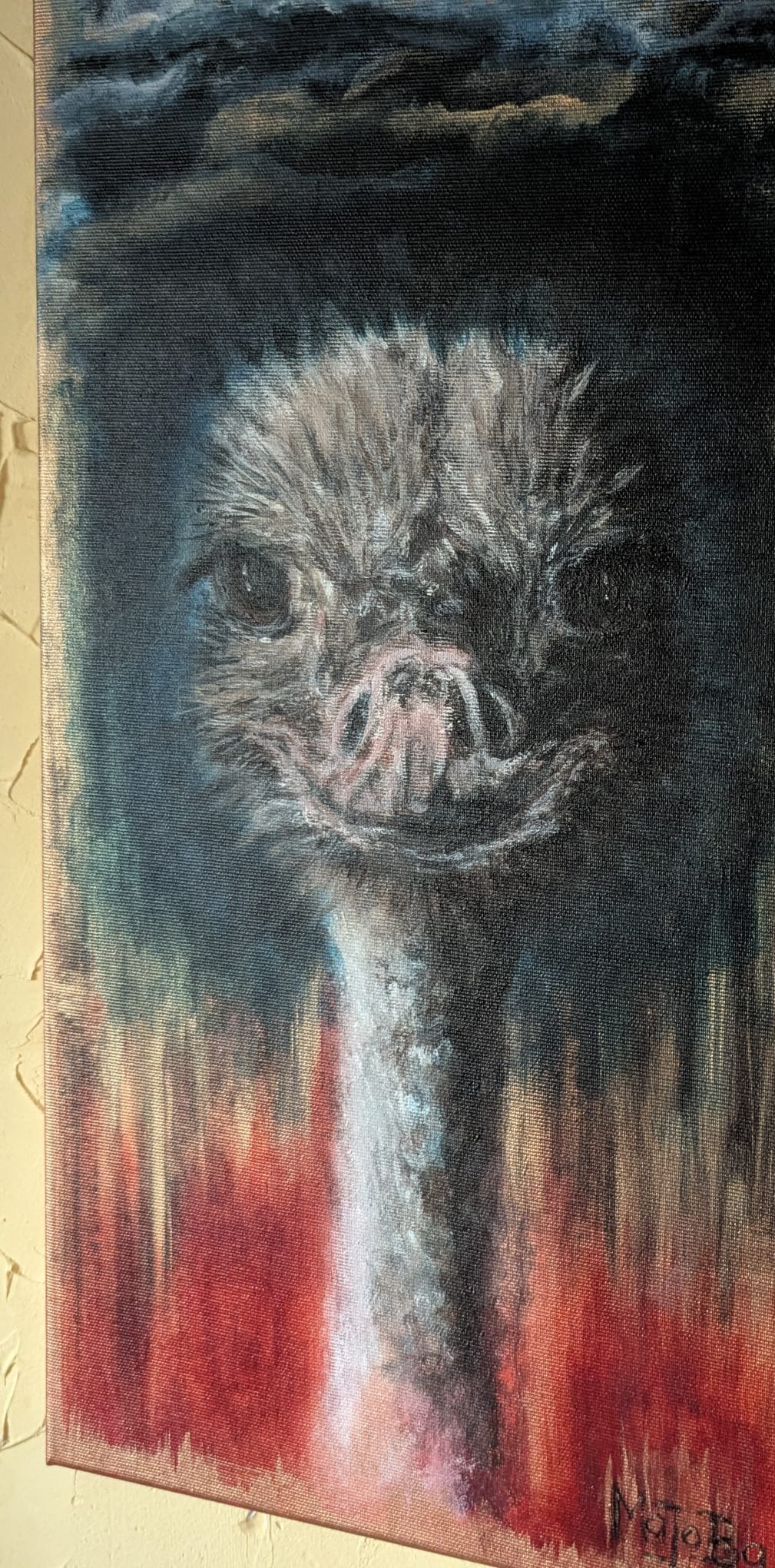 „Vogel Strauß“, Acryl auf Leinwand,
